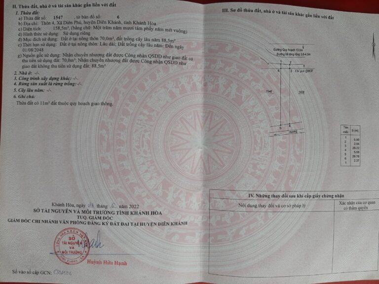 Cần bán đất 158,5 m2, Diên Phú, Diên Khánh. Cách 1A chỉ 100m, đường liên thông